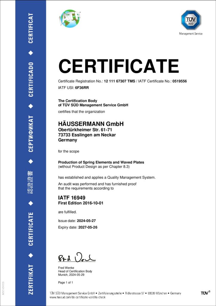 Delivering the required quality is a matter of course for us. Our QM system is certified in accordance with ISO 9001:2015 by Intertek (Northbrook, USA site) and ITAF 16949:2016 as well as ISO 9001:2015 and DIN EN ISO 14001:2015 (Esslingen sites). The daily work is supported by an innovative CAQ program.
