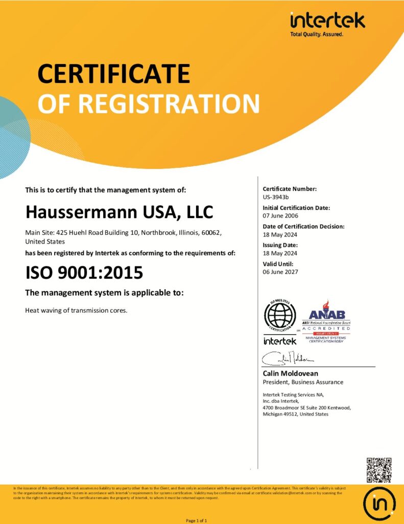 Northbrook, USA: ISO 9001:2015 by Intertek